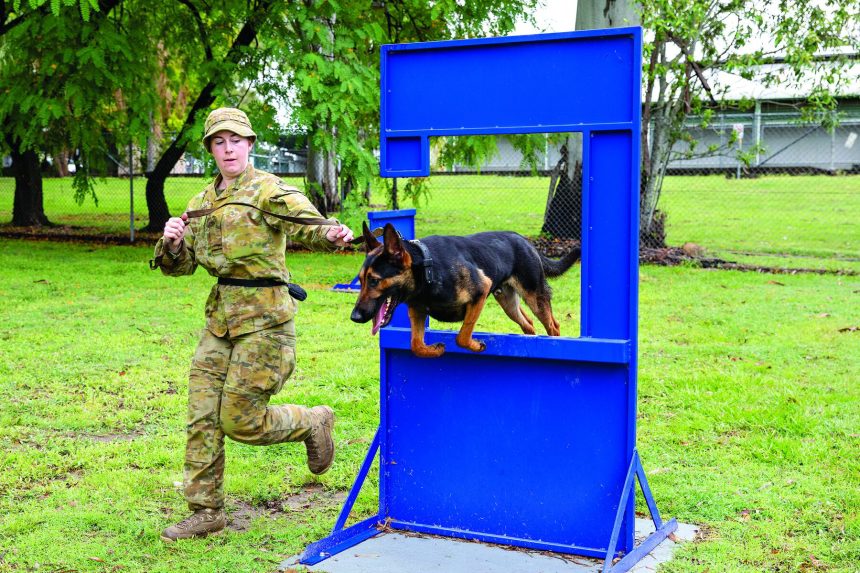 At 32kg and almost two years old, the Belgian Shepherd Malinois is a huge presence in her work life with the 1st Military Police Battalion’s Police Dog Platoon at Swartz Barracks, Oakey.