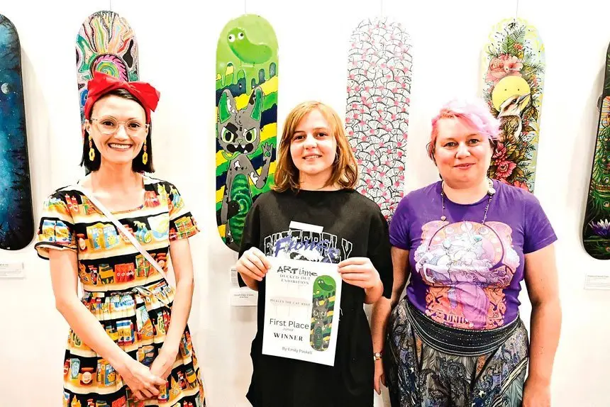Opening night was a great mixer of pop culture and fine arts. The judges had a tough job choosing the final winners from the 38 decks that were entered. Overall winner was Rafaella Picotti, while junior section winner was Emily Paskall..