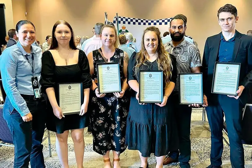 HEROES: Police recognise brave locals Eleanor, Hope, Kelly, Stephen and Alex.