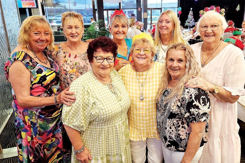 HERE’S CHEERS: Celebrating Christmas at CSI lunch were: (back l to r) Glenda Wallam, Lee Crook, Louise Schmidt, Marion Railston and Julie Maddox. (front l to r) Marie Sidham, Robyn Poore and Rhonda Shephard.